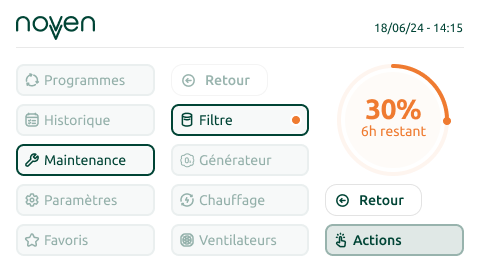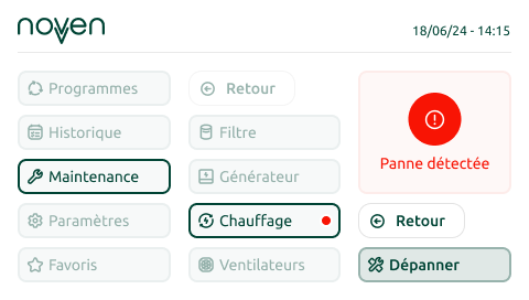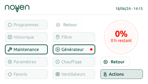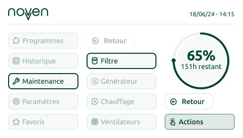 Le menu Maintenance vous permet de surveiller l’état des composants clés de votre armoire en temps réel. Grâce à cette visibilité et à une maintenance régulière, vous prolongez la durée de vie de l’appareil, garantissez la fiabilité des cycles, et maintenez un haut niveau d’hygiène pour vos équipements.